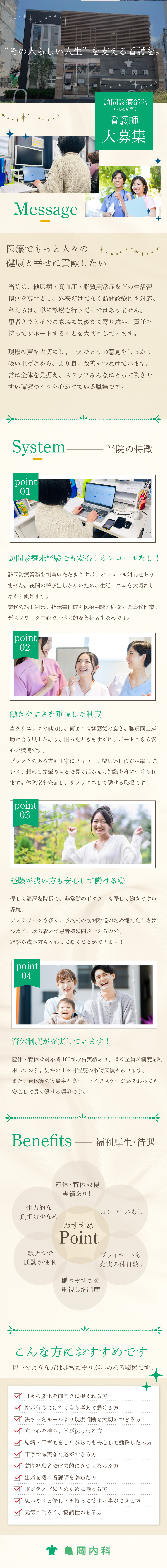 | 募集職種 | 訪問診療部署(在宅部門)の看護師/正社員 |