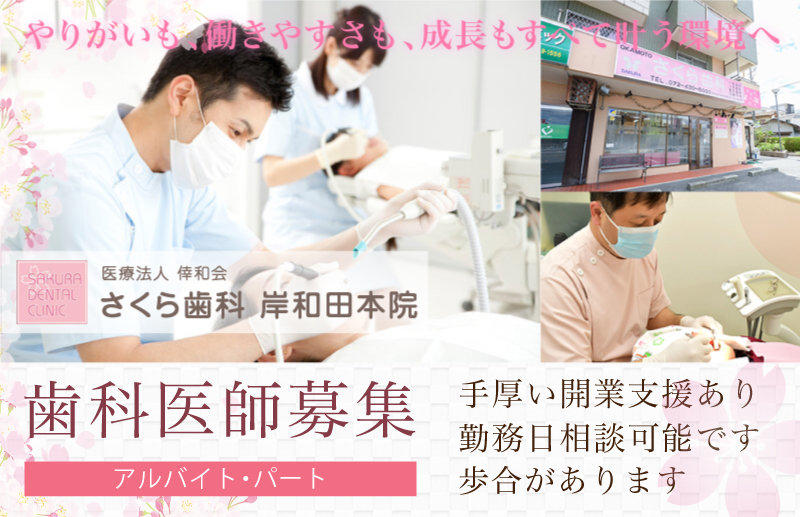 【岸和田市】医療法人倖和会 さくら歯科岸和田院/歯科医師(非常勤)