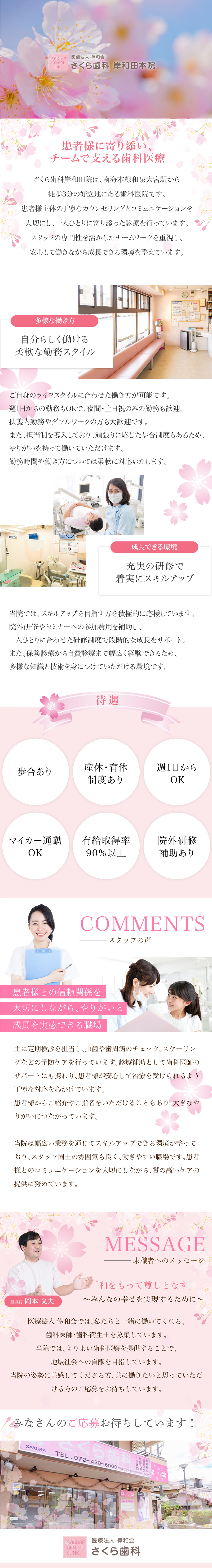【岸和田市】医療法人倖和会 さくら歯科岸和田院/歯科衛生士(非常勤)