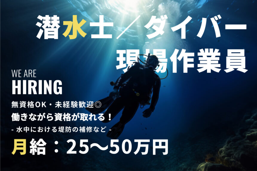 募集職種 | 潜水士・ダイバー・現場作業員潜水士・ダイバー・現場作業員 月給:250,000円~500,000円 |